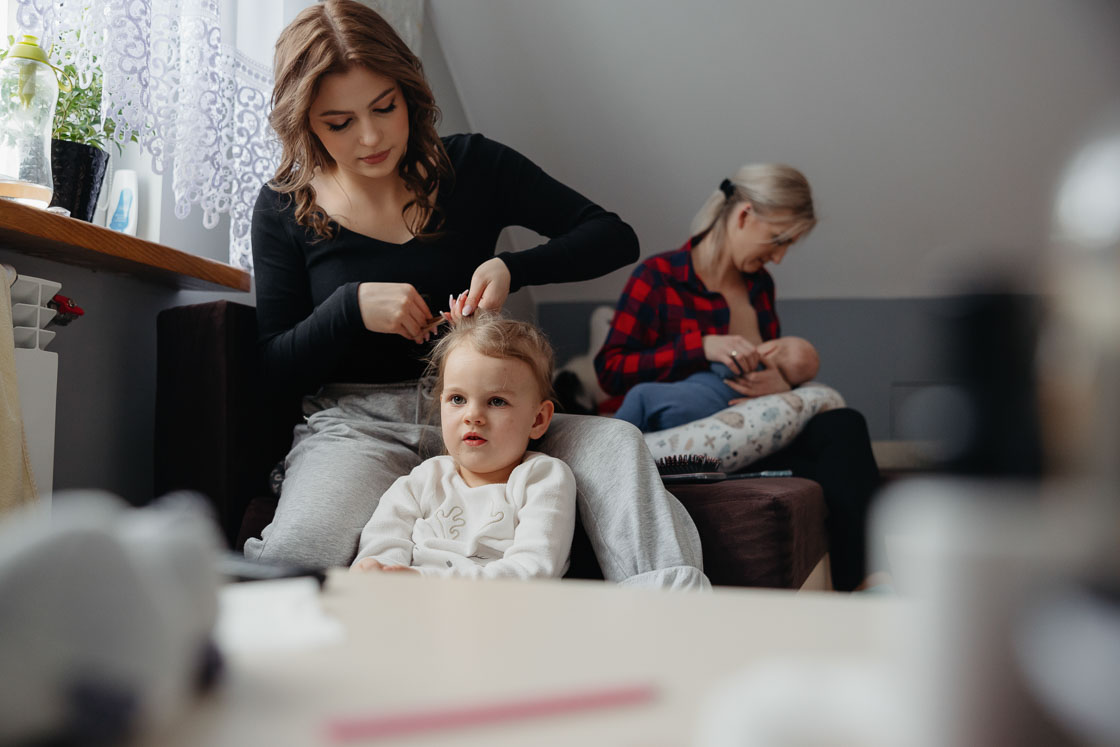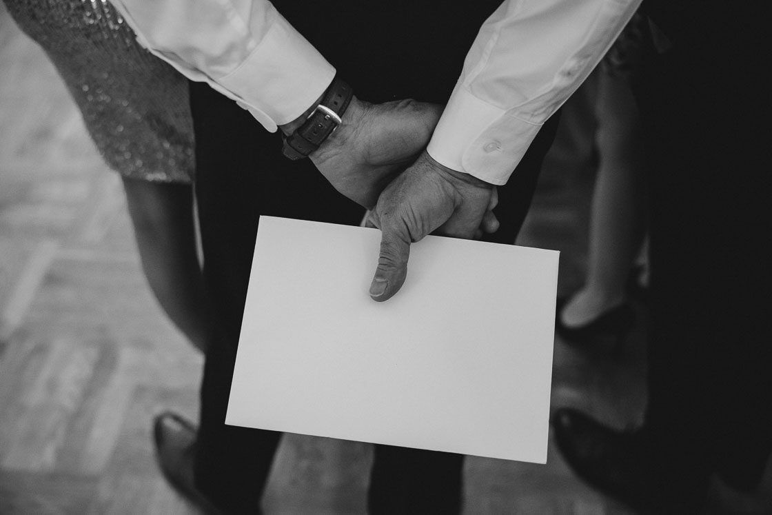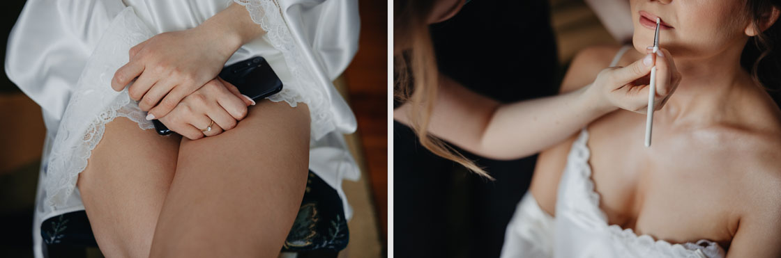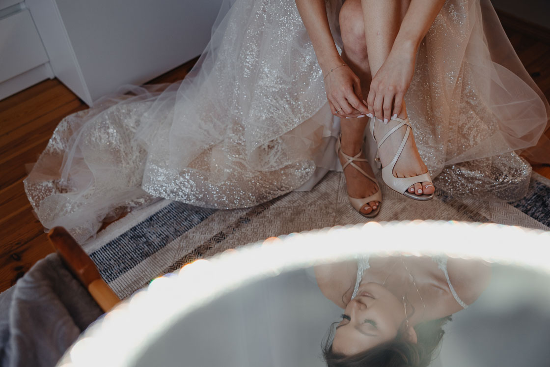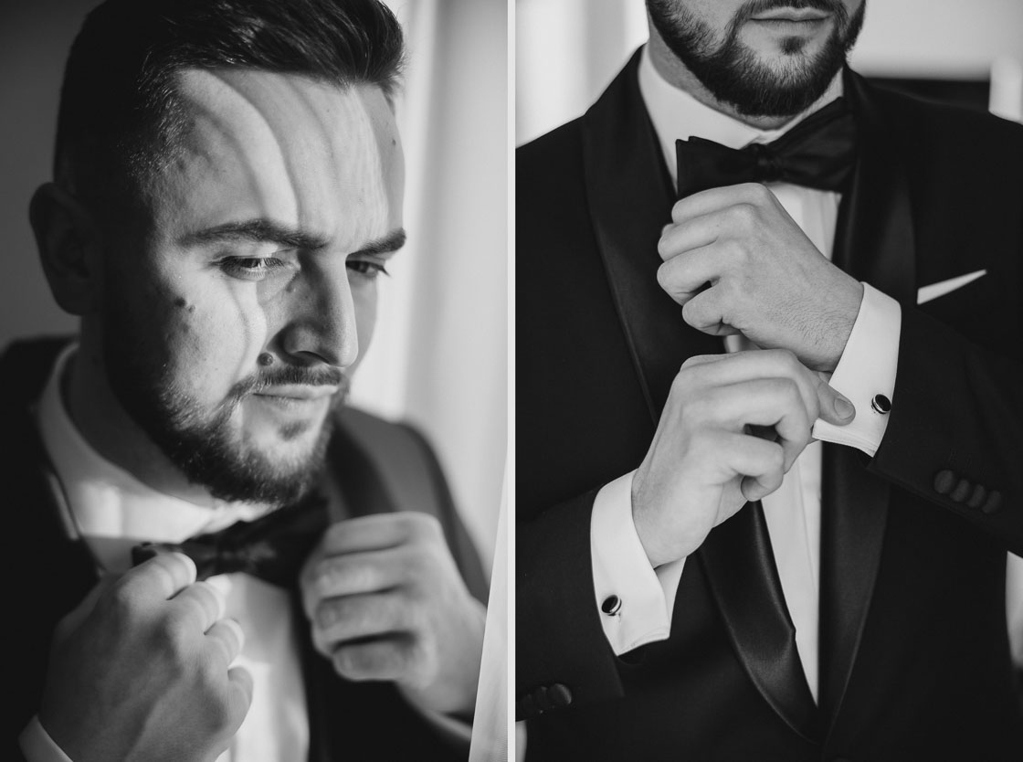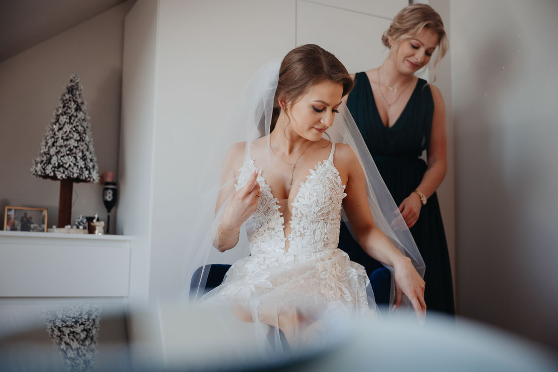 Przygotowania do ślubu to moment, w którym wiele się dzieje zarówno u Panny Młodej, jak i u Pana Młodego. Tym bardziej, kiedy odbywają się w gronie najbliższych, którzy również całymi sobą przeżywają ślub. Każdy krząta się po domu, przygotowując się na swój sposób. Bracia Sylwii znaleźli zajęcie przy dekoracji domu. Rodzina Adama urozmaicała mu moment ubierania. Wiele się działo. Lubię takie sytuacje, nieoczywiste momenty, historie, które dzieją się pomiędzy i dodają różnorodności ujęć w harmonii całego dnia ślubu.