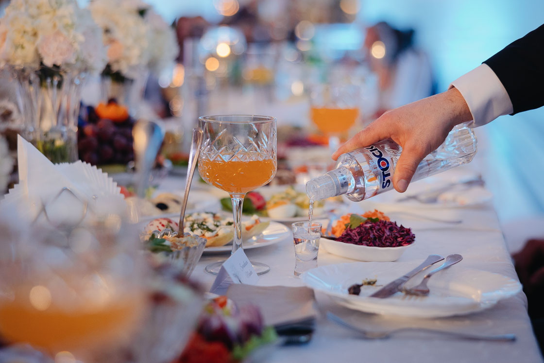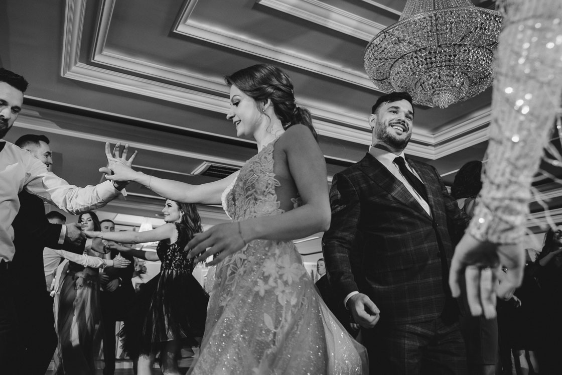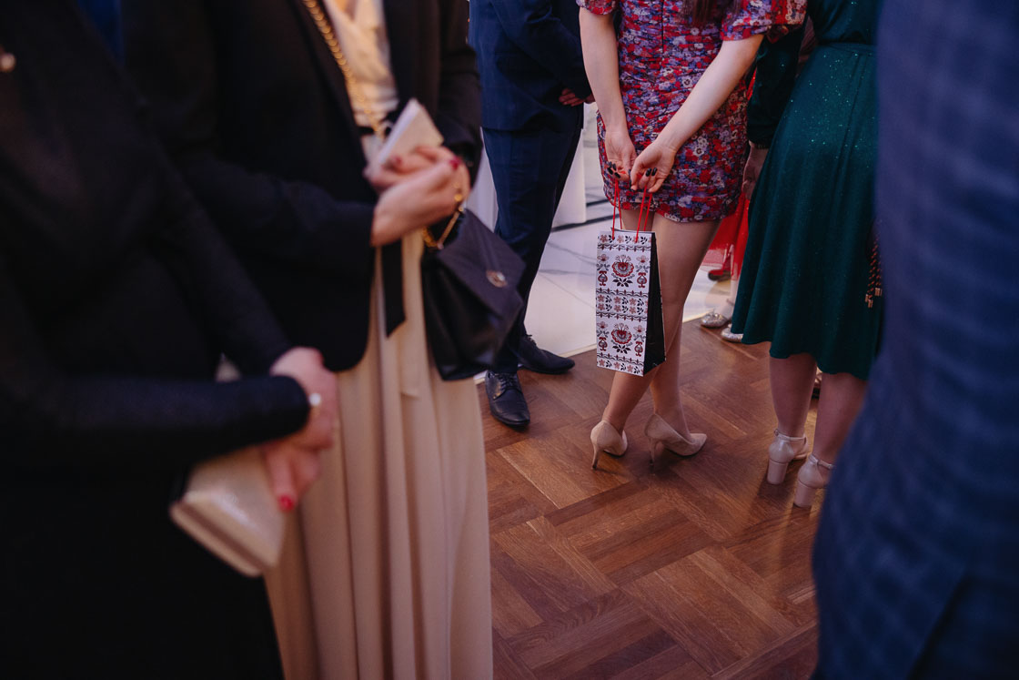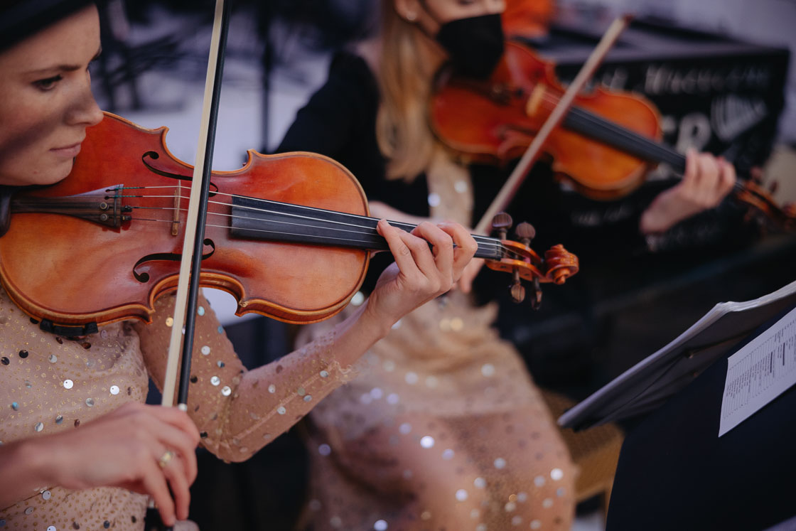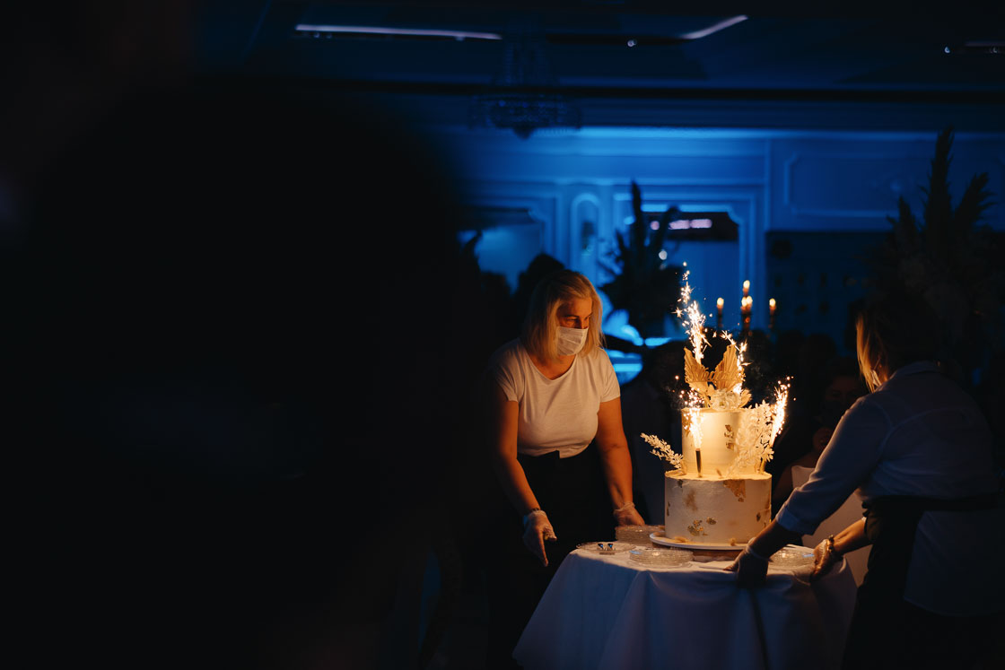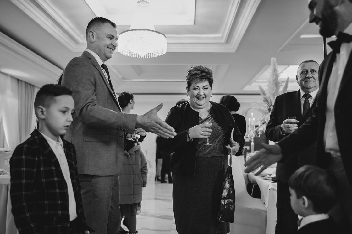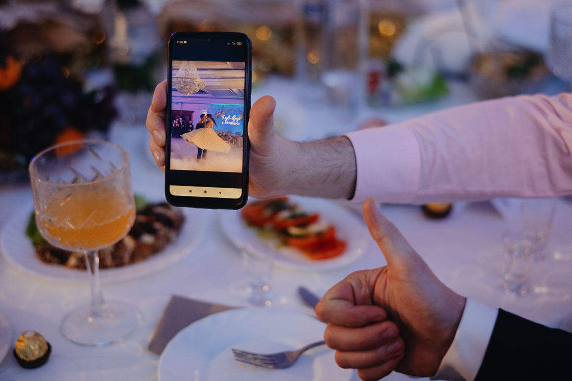 Czyli moment, na który wszyscy czekali najbardziej. Nic w tym dziwnego, w końcu na dworze temperatury w okolicach zera. Przyjęcie zaczynamy spokojnie, przy akompaniamencie smyczkowym. Goście składają życzenia nowożeńcom, którzy chwilę po uroczystej kolacji otworzą parkiet zmysłowym pierwszym tańcem w chmurach. Istny spektakl, świetnie przygotowany taniec zapiera dech w piersiach. Brawo Młodzi! Wszyscy ruszamy na parkiet i bawimy się do białego rana!