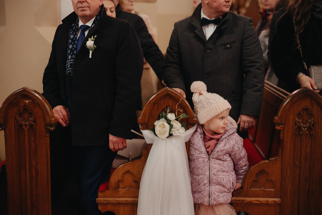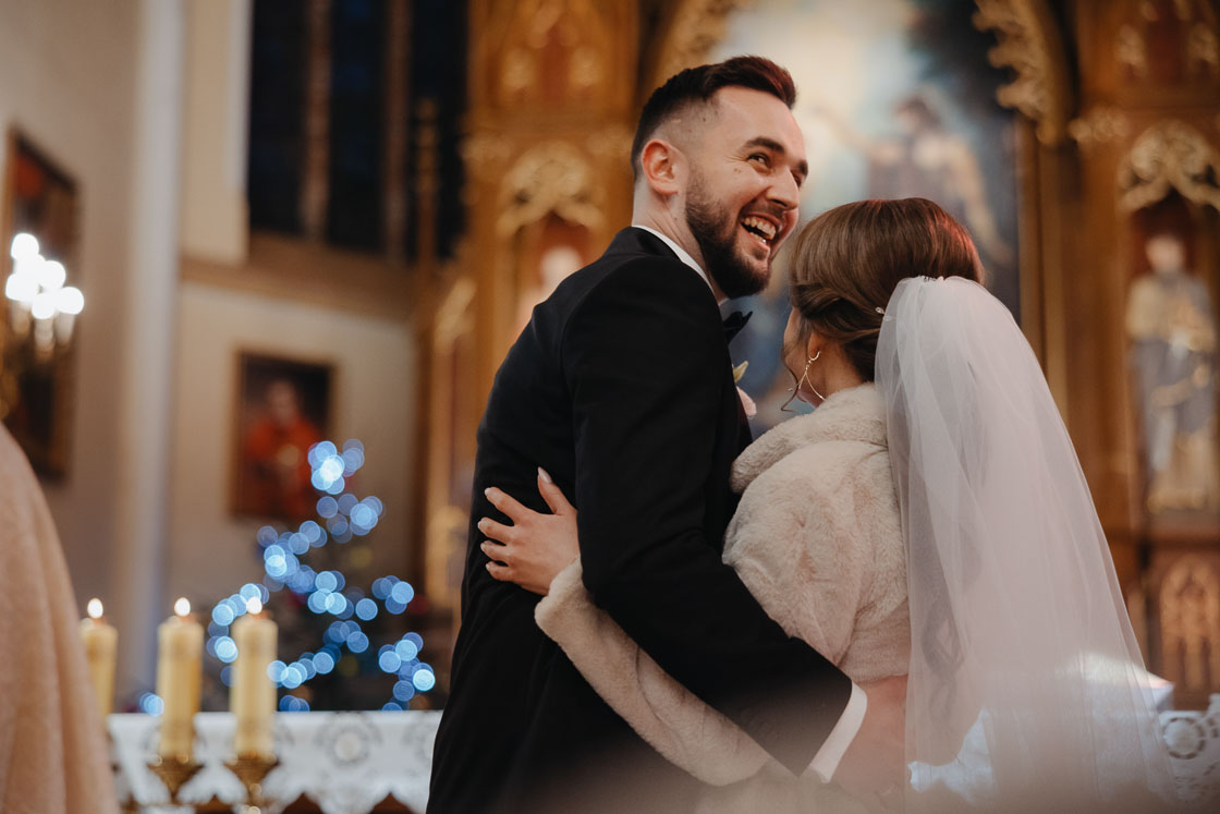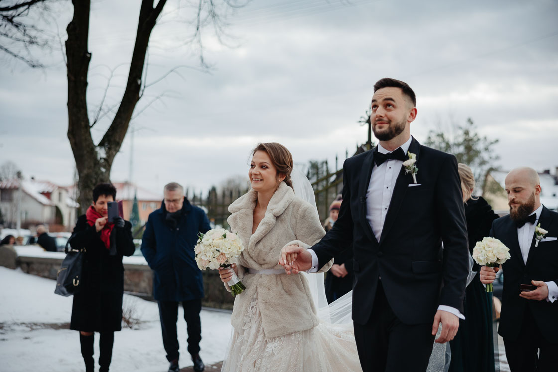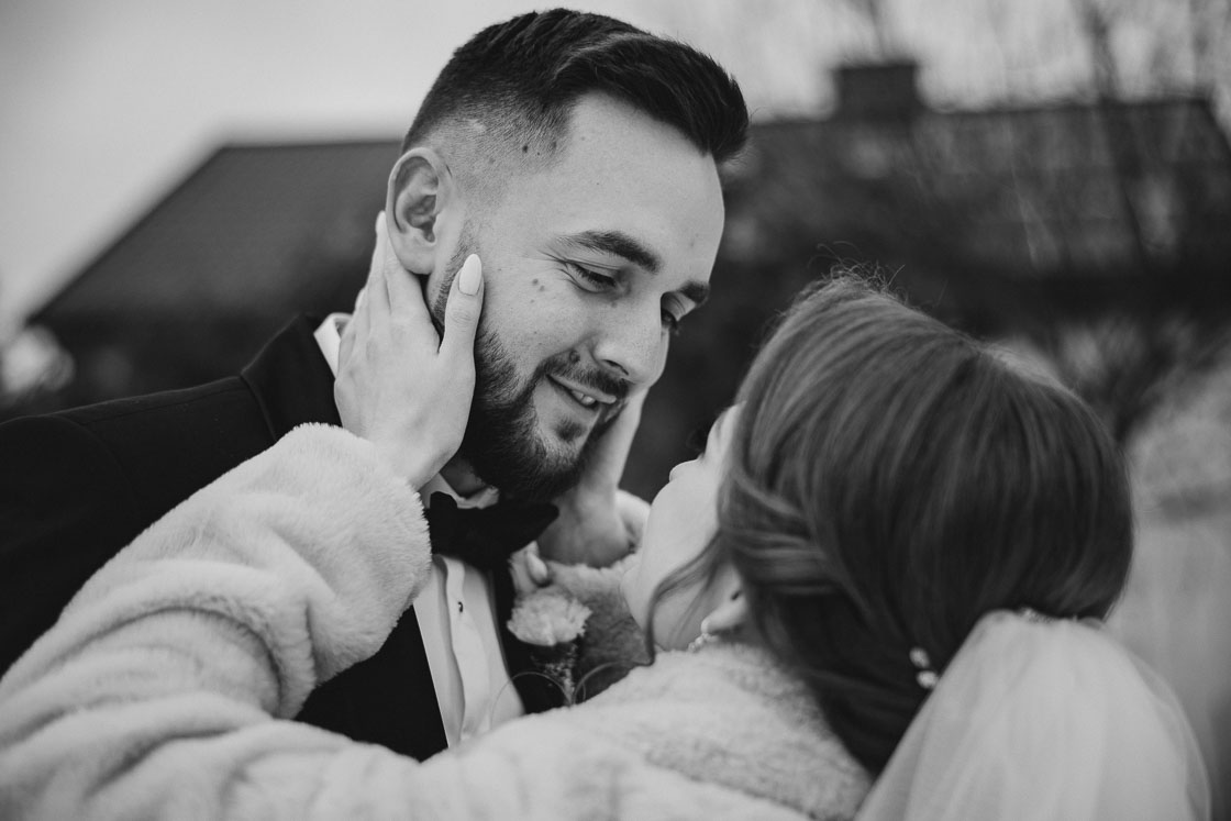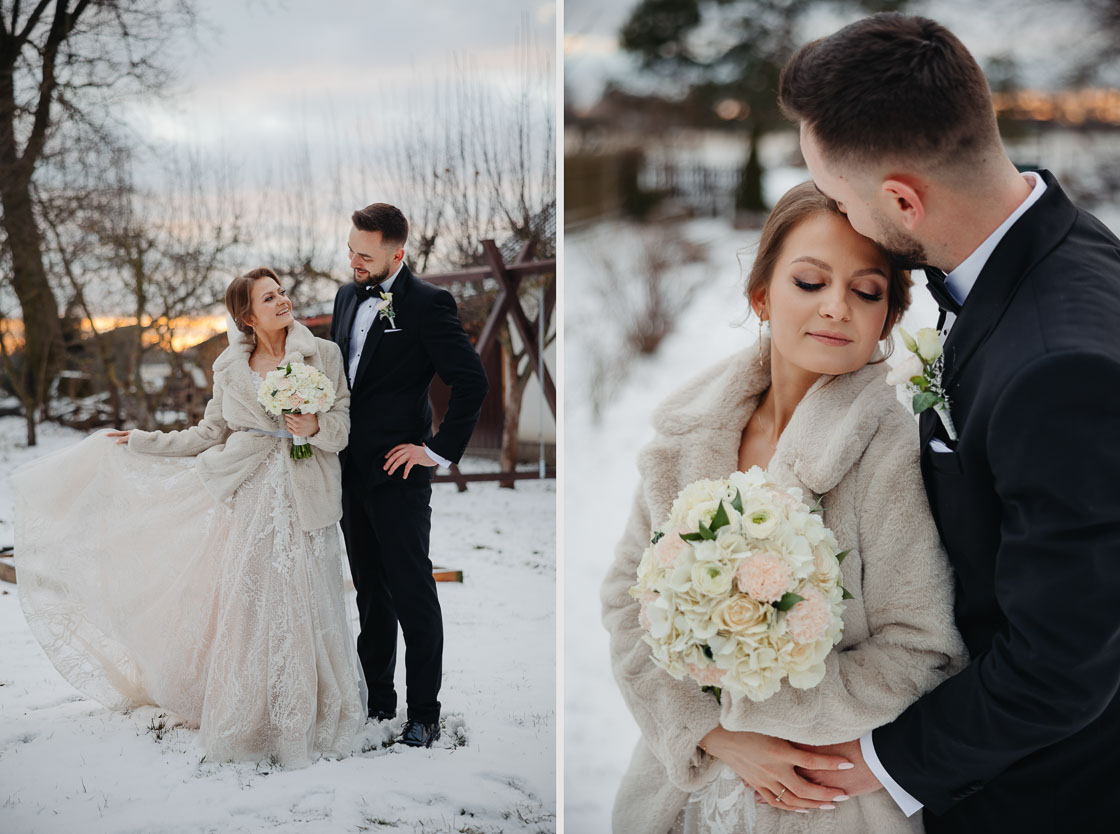 Decyzja o ślubie zimą często nie jest żadnym zaskoczeniem. Co roku fotografuję takie uroczystości. Narzeczeni wybierają tę porę roku, jeśli dobrze się czują w śnieżnym klimacie, a czas oczekiwania na termin sali w sezonie wysokim jest dla nich za długi. Tym razem było jednak inaczej. Sylwia i Adam byli zmuszeni przekładać wesele z powodu pandemii. Reorganizacja zaplanowanego już ślubu i wesela nie jest niczym łatwym i przyjemnym. Dogranie terminu sali tak, aby pasował wybranym już usługodawcom, często graniczy z cudem i jest to temat na całkiem inną opowieść. Ale teraz o rzeczach przyjemnych i pięknych!