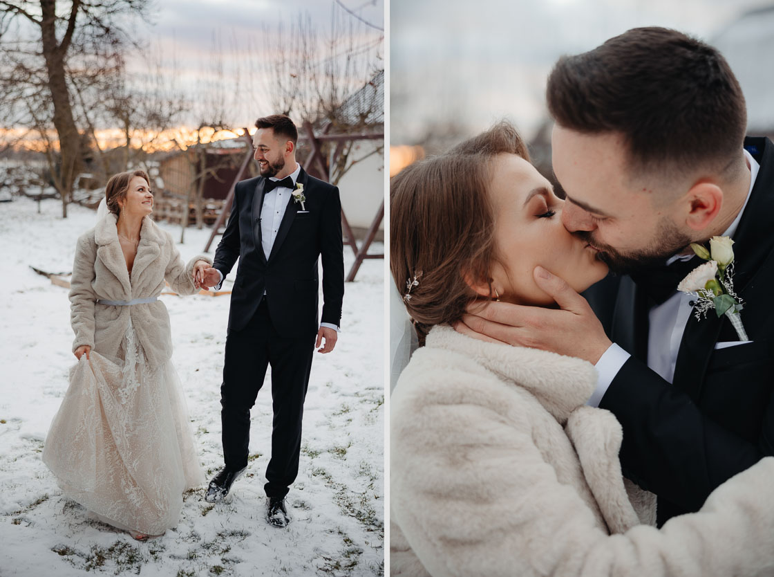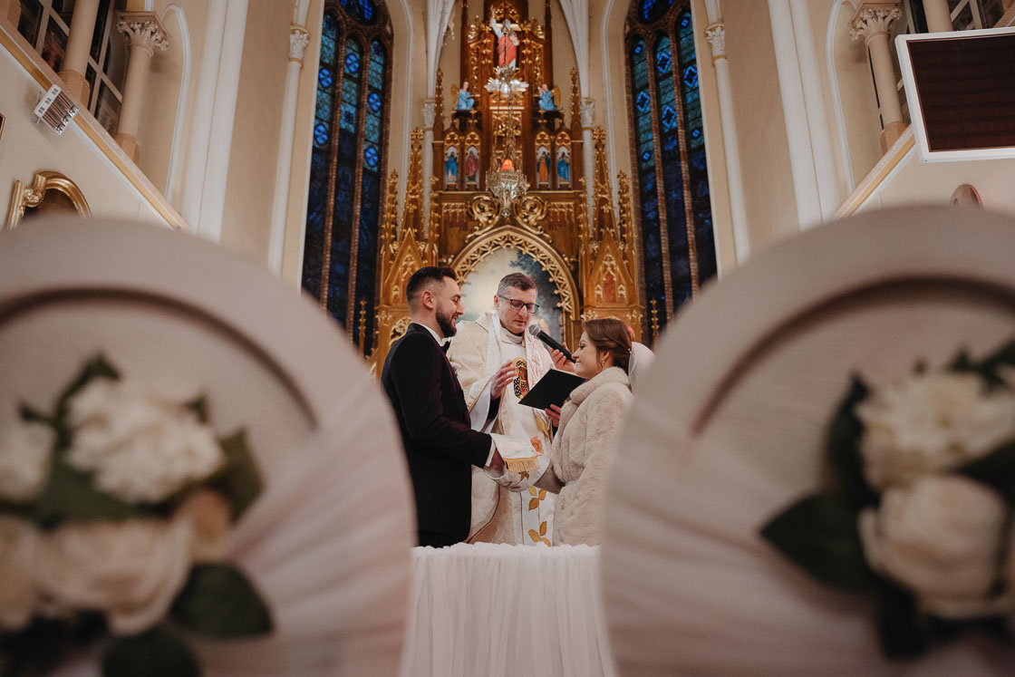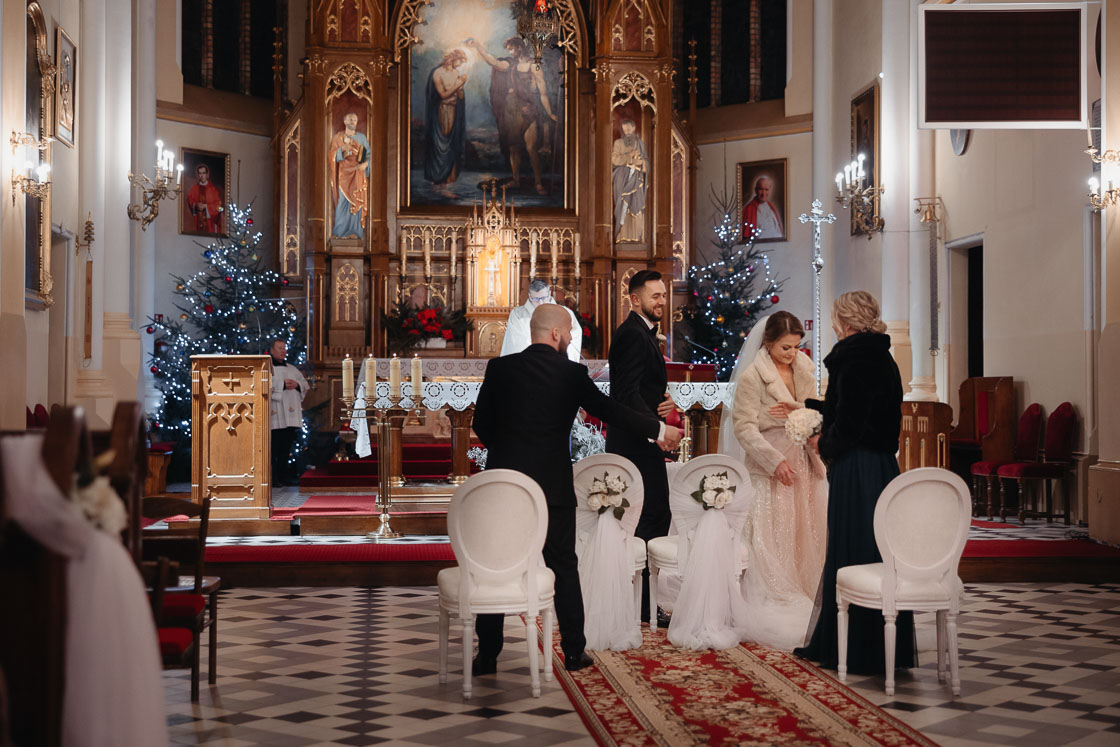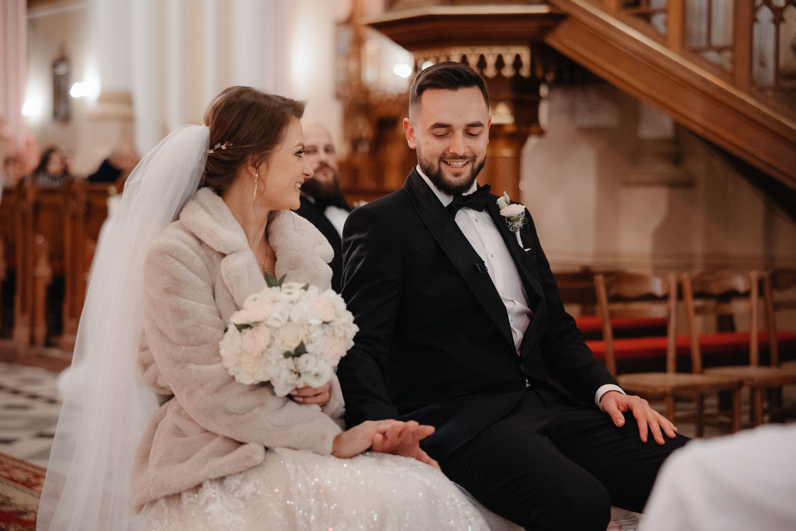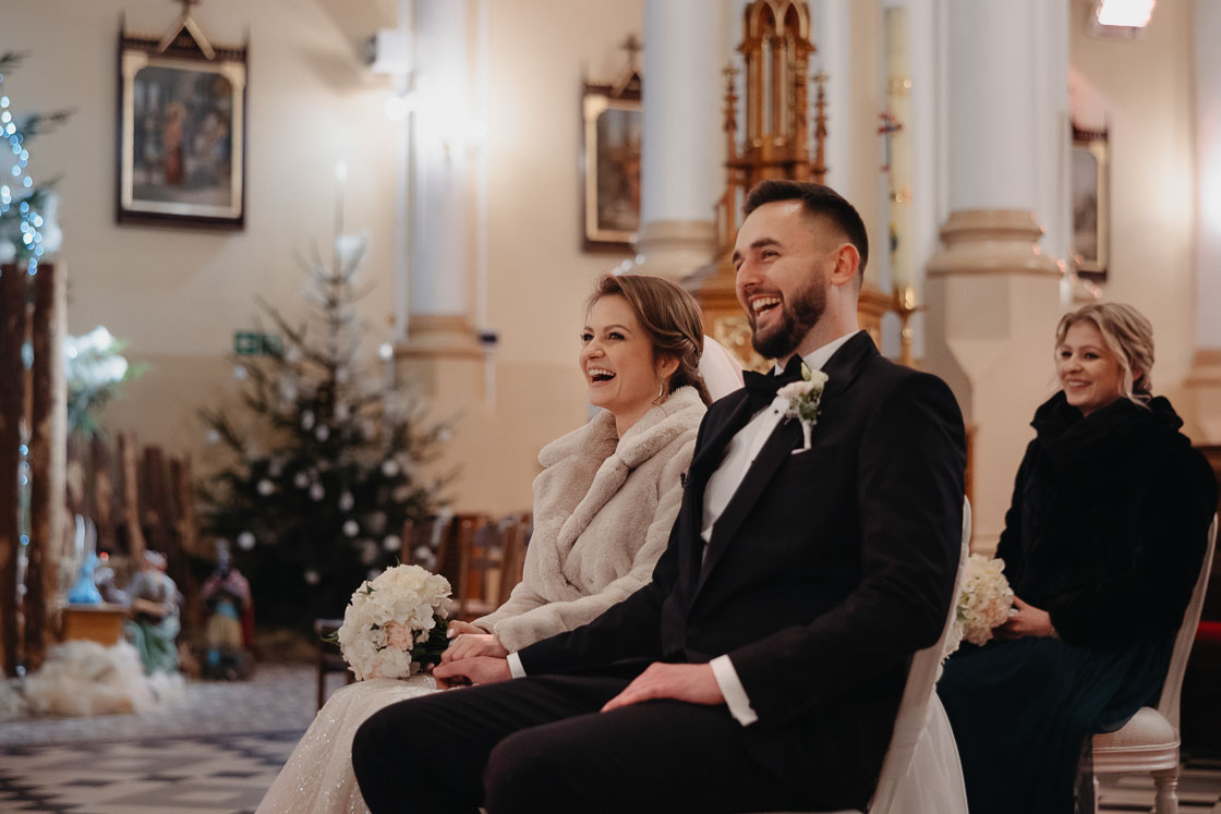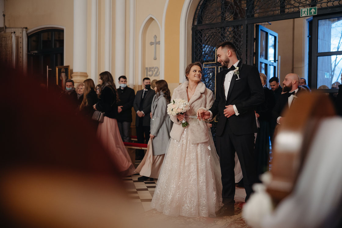 Decyzja o ślubie zimą często nie jest żadnym zaskoczeniem. Co roku fotografuję takie uroczystości. Narzeczeni wybierają tę porę roku, jeśli dobrze się czują w śnieżnym klimacie, a czas oczekiwania na termin sali w sezonie wysokim jest dla nich za długi. Tym razem było jednak inaczej. Sylwia i Adam byli zmuszeni przekładać wesele z powodu pandemii. Reorganizacja zaplanowanego już ślubu i wesela nie jest niczym łatwym i przyjemnym. Dogranie terminu sali tak, aby pasował wybranym już usługodawcom, często graniczy z cudem i jest to temat na całkiem inną opowieść. Ale teraz o rzeczach przyjemnych i pięknych!