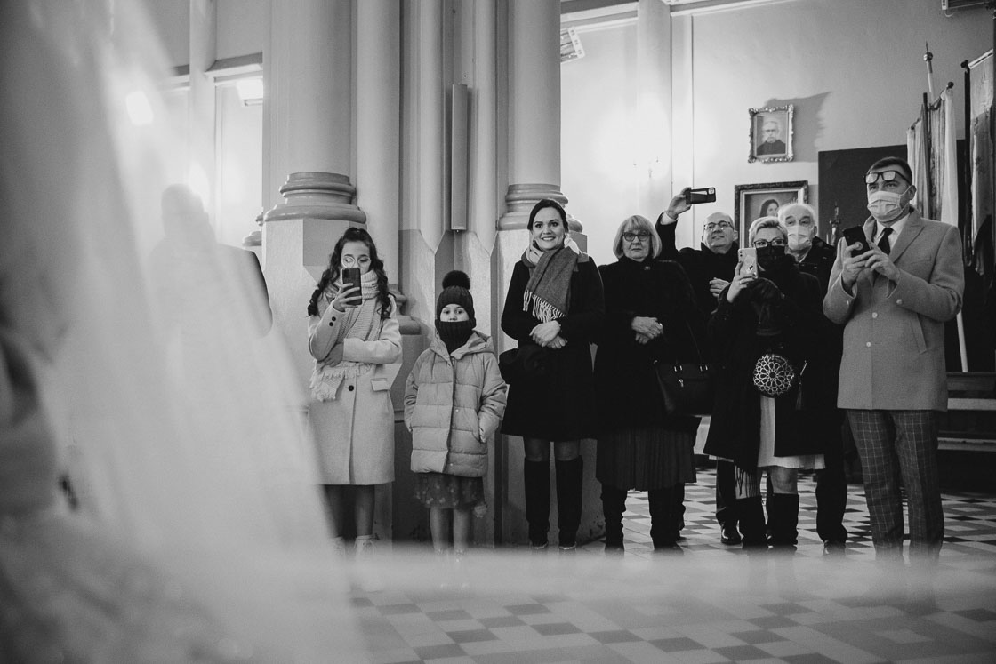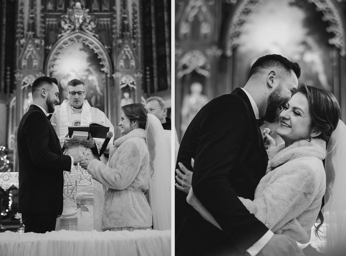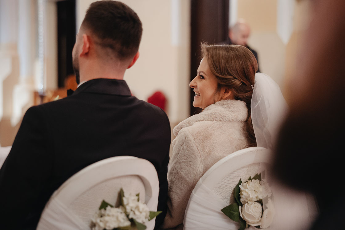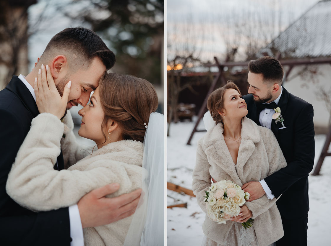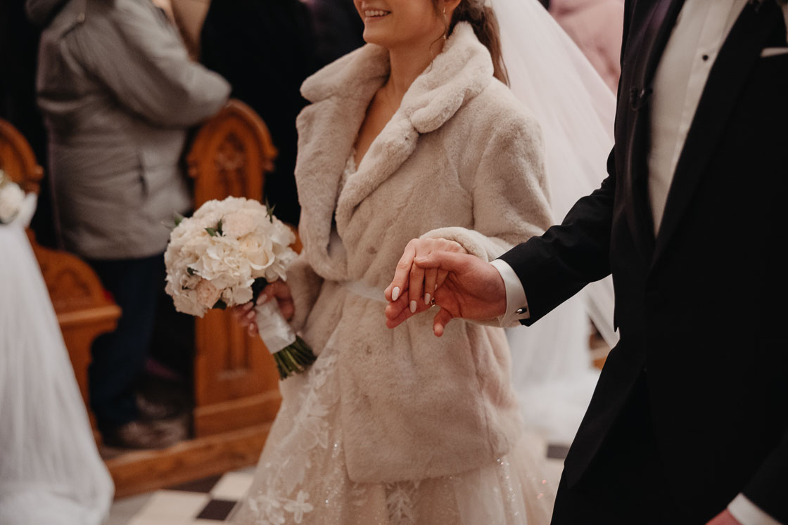 Decyzja o ślubie zimą często nie jest żadnym zaskoczeniem. Co roku fotografuję takie uroczystości. Narzeczeni wybierają tę porę roku, jeśli dobrze się czują w śnieżnym klimacie, a czas oczekiwania na termin sali w sezonie wysokim jest dla nich za długi. Tym razem było jednak inaczej. Sylwia i Adam byli zmuszeni przekładać wesele z powodu pandemii. Reorganizacja zaplanowanego już ślubu i wesela nie jest niczym łatwym i przyjemnym. Dogranie terminu sali tak, aby pasował wybranym już usługodawcom, często graniczy z cudem i jest to temat na całkiem inną opowieść. Ale teraz o rzeczach przyjemnych i pięknych!