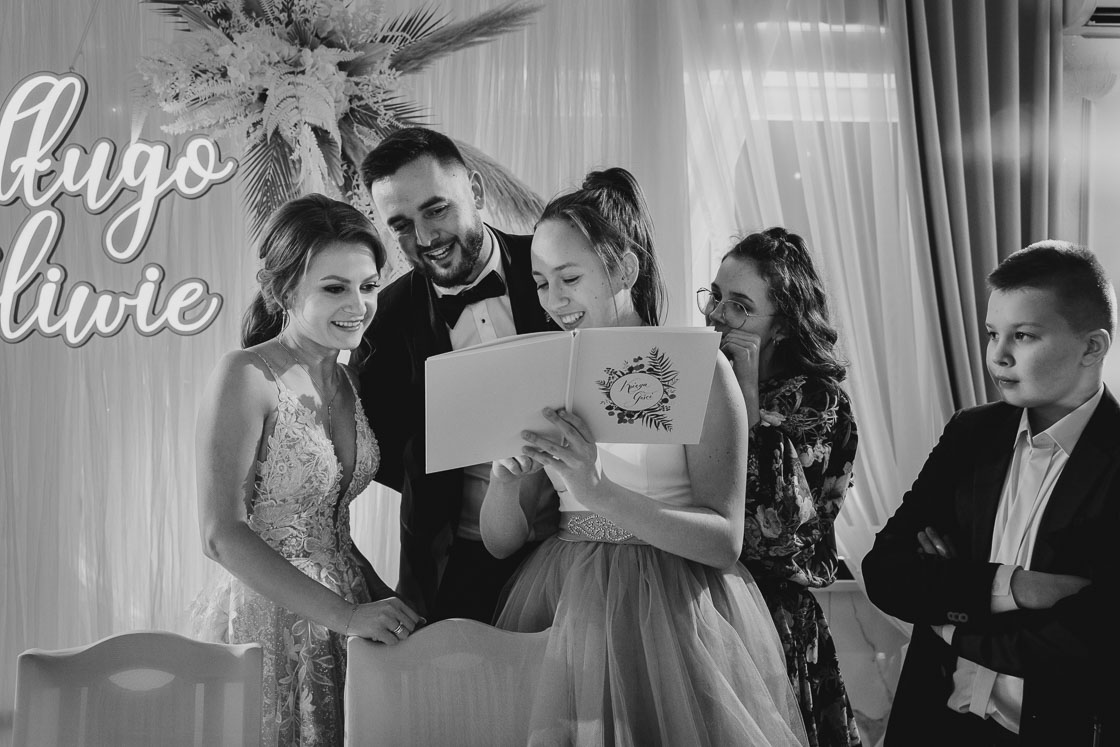 W tej czy innej postaci to stwierdzenie znają wszyscy. Ważne jednak, aby nie było ono tylko domeną romantycznych filmów, seriali, ale także rozumiane i wprowadzane w nasze życie. Tym bardziej, jeśli podejmujemy tematykę ślubną. W naszej kulturze to właśnie miłość jest zalążkiem decyzji o ślubie, niestety czasem w czasie organizacji dnia ślubu, jak i jego trwania, mając na głowie dziesiątki innych aspektów, to uczucie ucieka gdzieś na drugi plan. To, że w tym wyjątkowym dniu uczucie między dwojgiem ludzi jest najważniejsza, doskonale prezentują Sylwia z Adamem. Pełni szczerości ślubowali sobie miłość, przez cały dzień szczęście wręcz od nich emanowało, a radość udzielała się wszystkim, którzy świetnie się bawili. Tak powinien wyglądać idealnie dobrany związek.